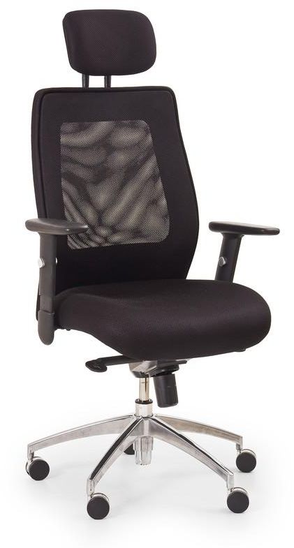 Bekväm kontorsstol med en stilren design. Klädd med ett mycket behagligt membrantyg och ryggstöd i svart nät. Höj- och sänkbar sits med hjälp av spaken under sitsen, och stolen är lätt förflyttad med hjälp av hjulen under den kromade stjärnfoten.