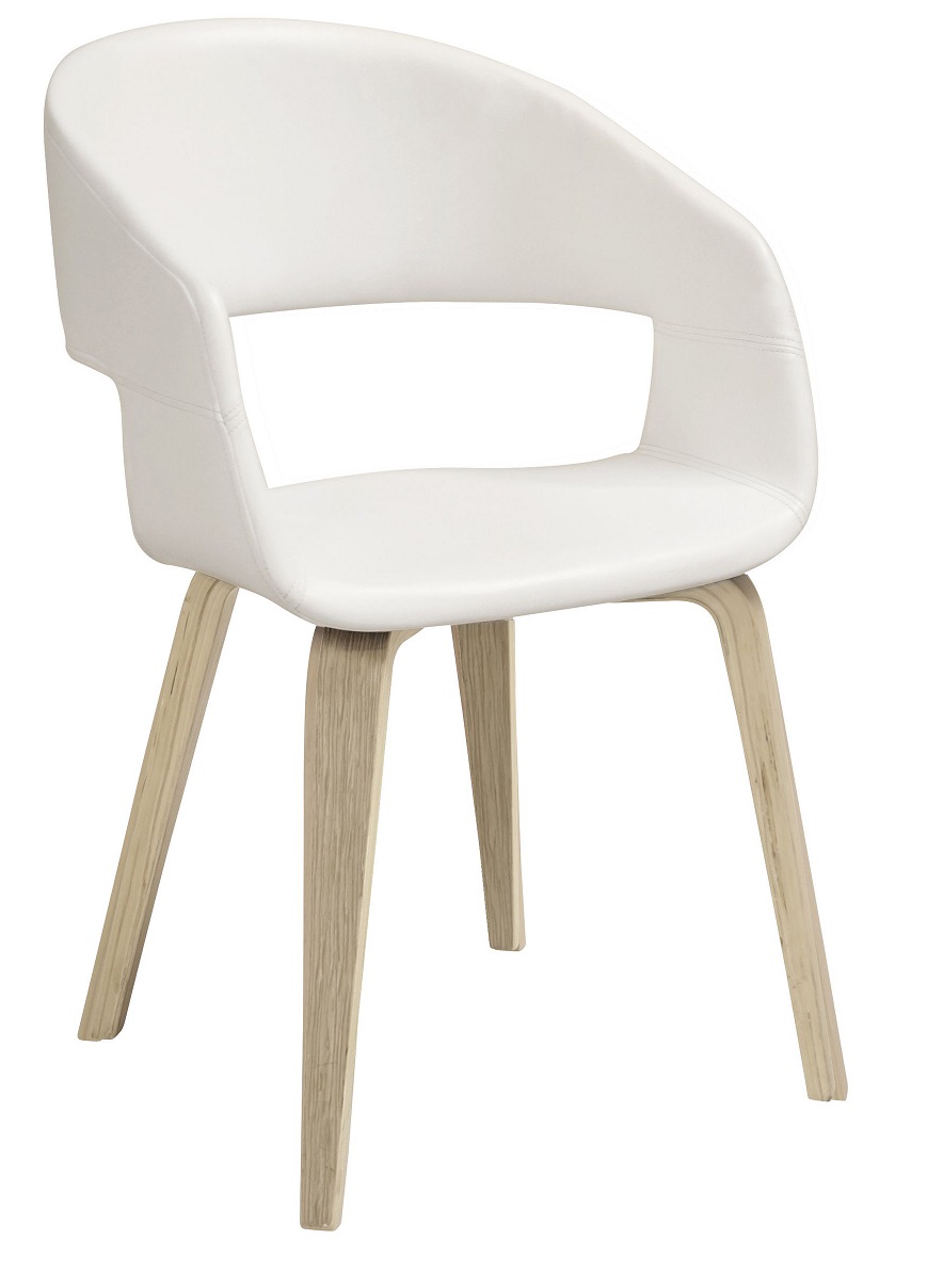 Nova-serien är våra stol-serie med en nordsik design och fräcka stolar. Denna modellen är en karmstol med stoppad sits, vit tålig PU-skinn med vitoljade massiva träben! Morgondagens klassiker!