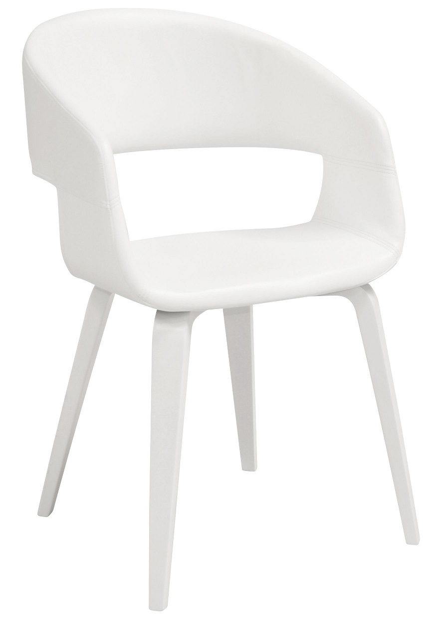 Nova-serien är våra stol-serie med en nordsik design och fräcka stolar. Denna modellen är en karmstol med stoppad sits, vit tålig PU-skinn med vitlackade träben! Morgondagens klassiker!