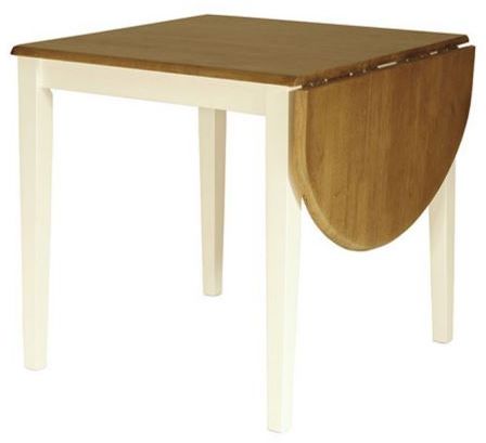 Elegant och nätt matbord med bordsskiva i ekbetsad lackat heveaträ och underrede i vitt. Halvrund klaff med storlek 40 cm, kan smidigt fällas ut vid lite större sällskap.