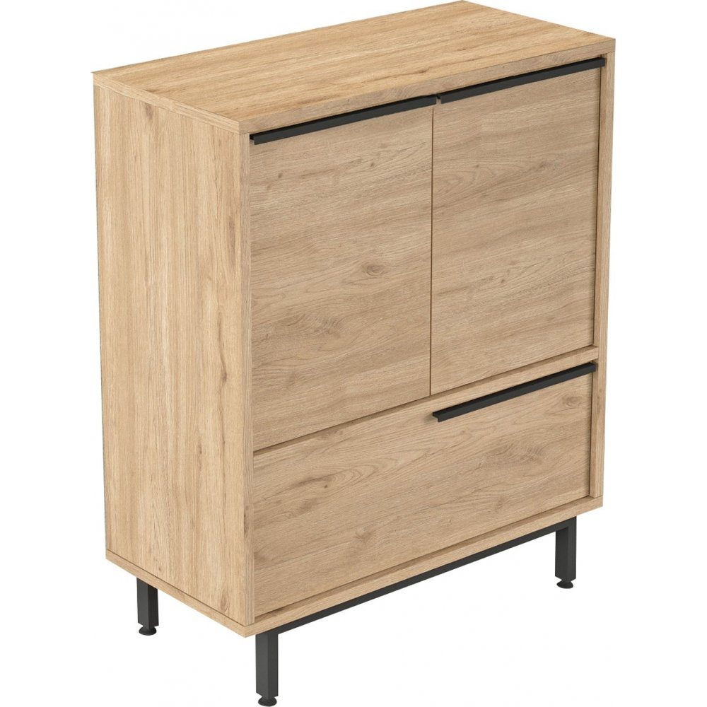 Skåp av melaminbelagd spånskiva med ben av metall.