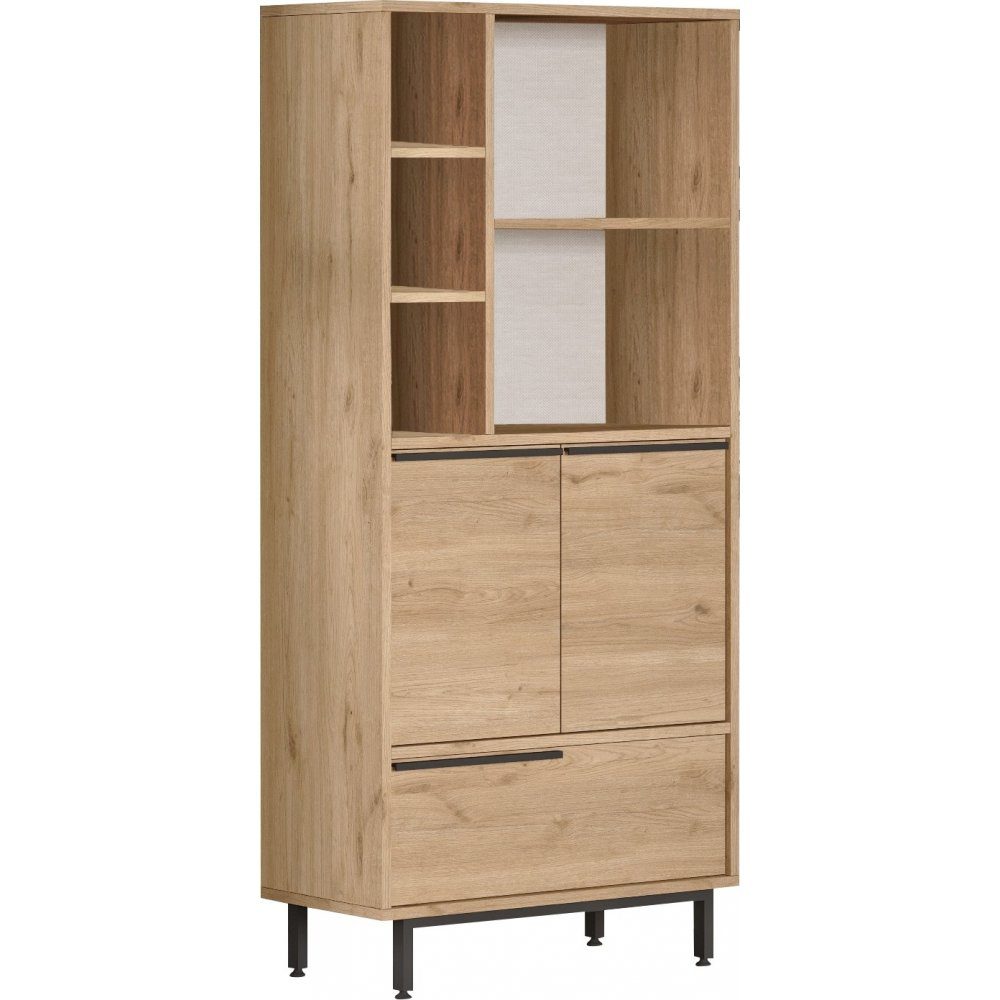 Skåp av melaminbelagd spånskiva med ben av metall.