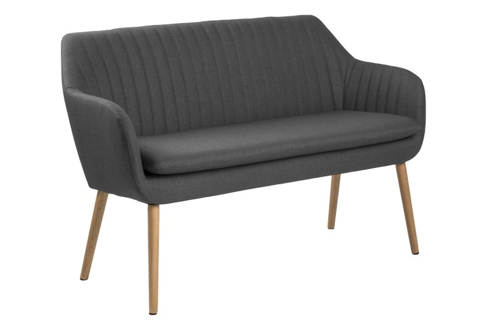 Snygg soffa med en klassisk profil. Klädd i mörkgrått tyg med ben gjorda av oljebehandlad ek. Soffan ingår i vår Oceanside serie.