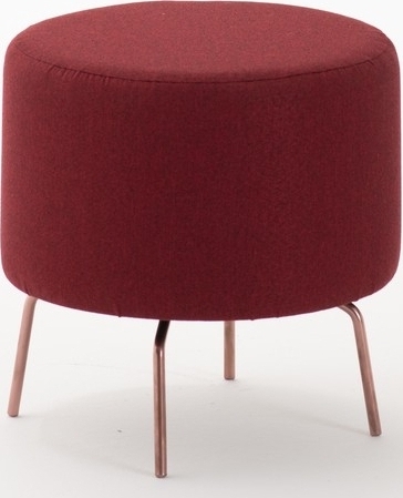 Sittpuff av bokträ och MDF. Klädsel av polyester/bomull och ben av metall.