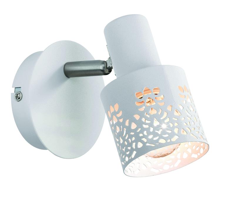 Öland härliga vägglampa med en stilren design. Tillverkad i vit metall med vackra mönster på skärmen. 2 meter sladd med strömbrytare på sladden. Liten lamphållare (E14). Max 40W glödljus eller motsvarande styrka i halogen, lågenergi eller LED. Mycket lätt för att hitta den rätta platsen för lampan i hemmet.