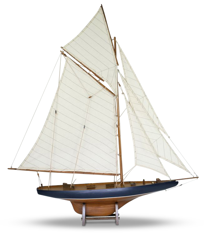 Vår marina serie "Old Sailor" består av möbler och interiör i marint tema. Modell av en klassisk segelbåt. Tillverkad av massiv furu, brunmålad med blå kant. Stora segel handgjorda av bomull.