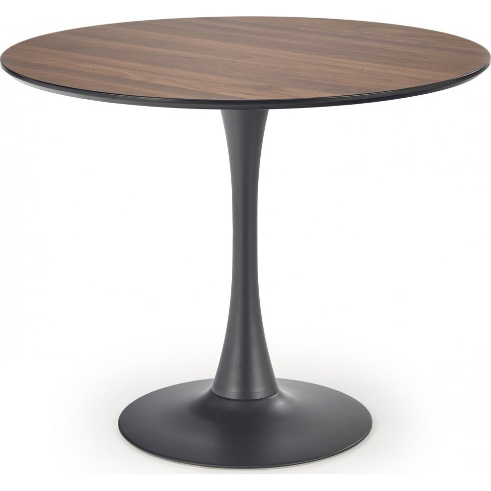 Matgruppen Olmo & Alfred är en stilren och kompakt kombination som förenar modern design med varma, eleganta material. Det runda Olmo matbordet har en bordsskiva i laminerad MDF med vacker valnötsfinish och ett svart pulverlackerat stålunderrede i pelardesign, vilket ger både stabilitet och ett tidlöst uttryck. Den nätta storleken gör bordet perfekt för mindre kök, matplatser eller som ett mysigt frukostbord.