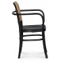 Matgrupp innehållande Omni matbord, serie runda matbord med toppskiva av ekfaner i olika utförande med matchande ben. Ett stilrent och nätt matbord. Ingår gör även 4 st Nemis karmstolar med svart stomme av böjträ, tillverkad av bok. Sits i trä och ryggstöd i naturfärgad rotting.