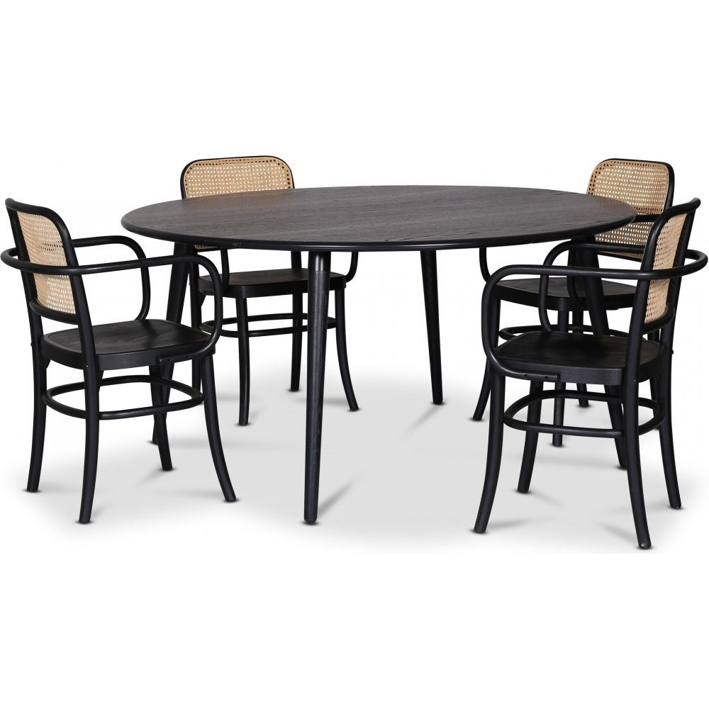Omni matgrupp, runt matbord Ø130 cm inkl 4 st Nemis svarta karmstolar - Svartbetsad ek