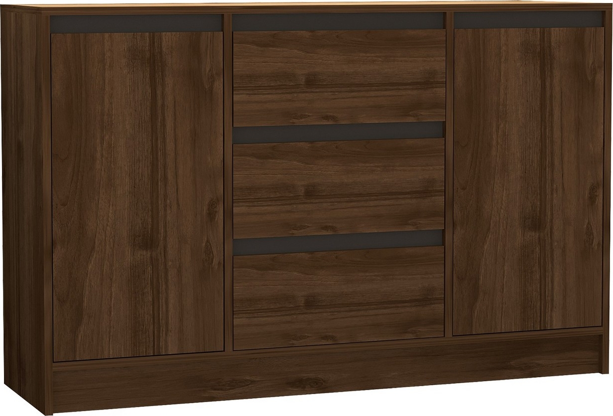 Skänk av melaminbelagd spånskiva med ben av plast.