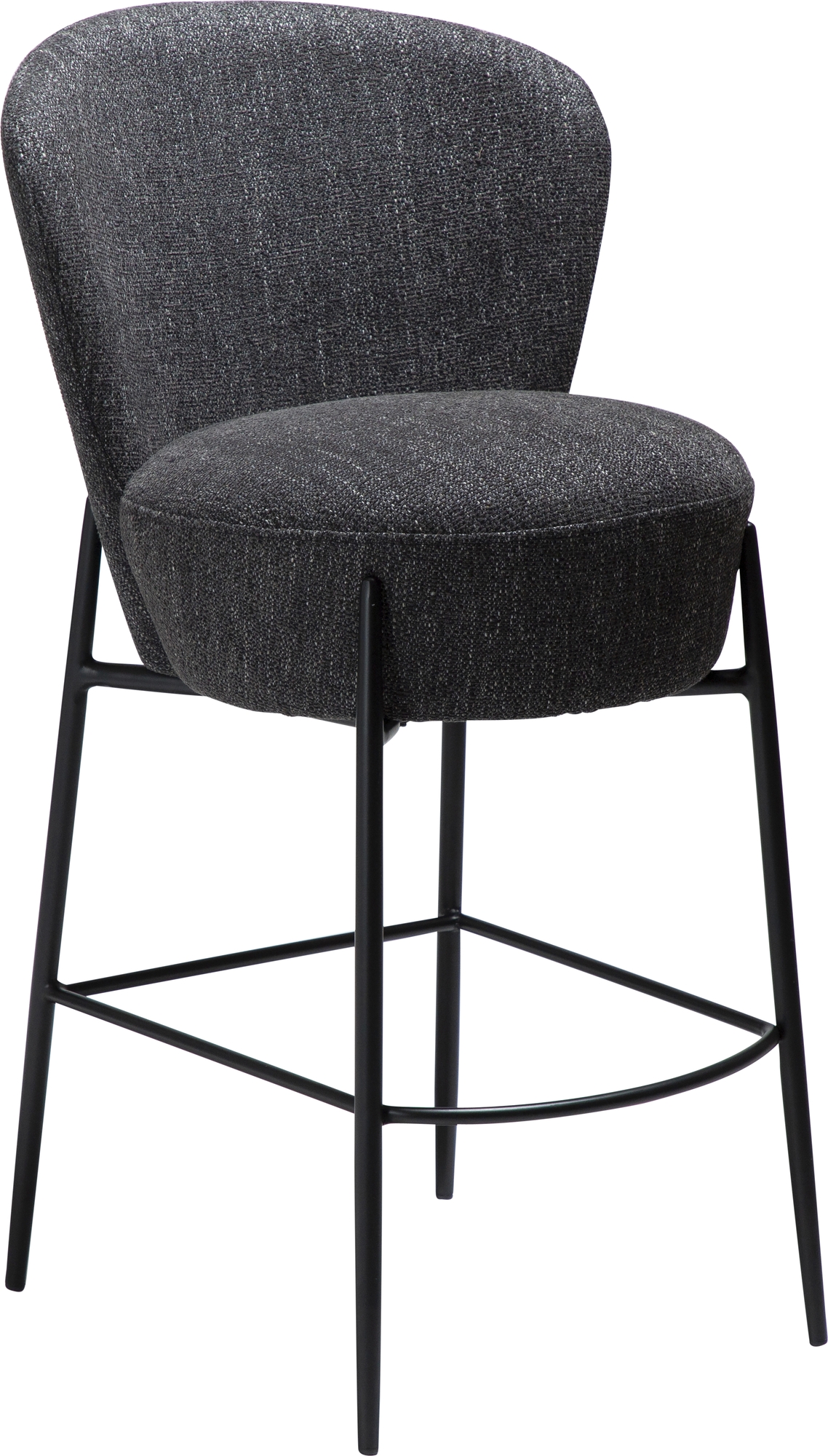 Counterstol med distinkt och lyxigt utseende. Den har en rund fodrad sits och omfamnande hög rygg. Tillsammans med de smala, lätt konade benen ger stolen uttryck för en sofistikerad elegans.