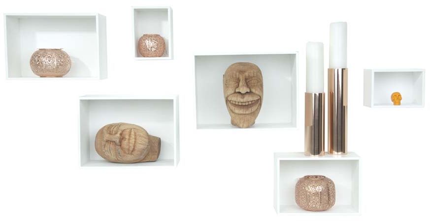 Set bestående av 6 st vita vägghyllor i vit MDF/faner.