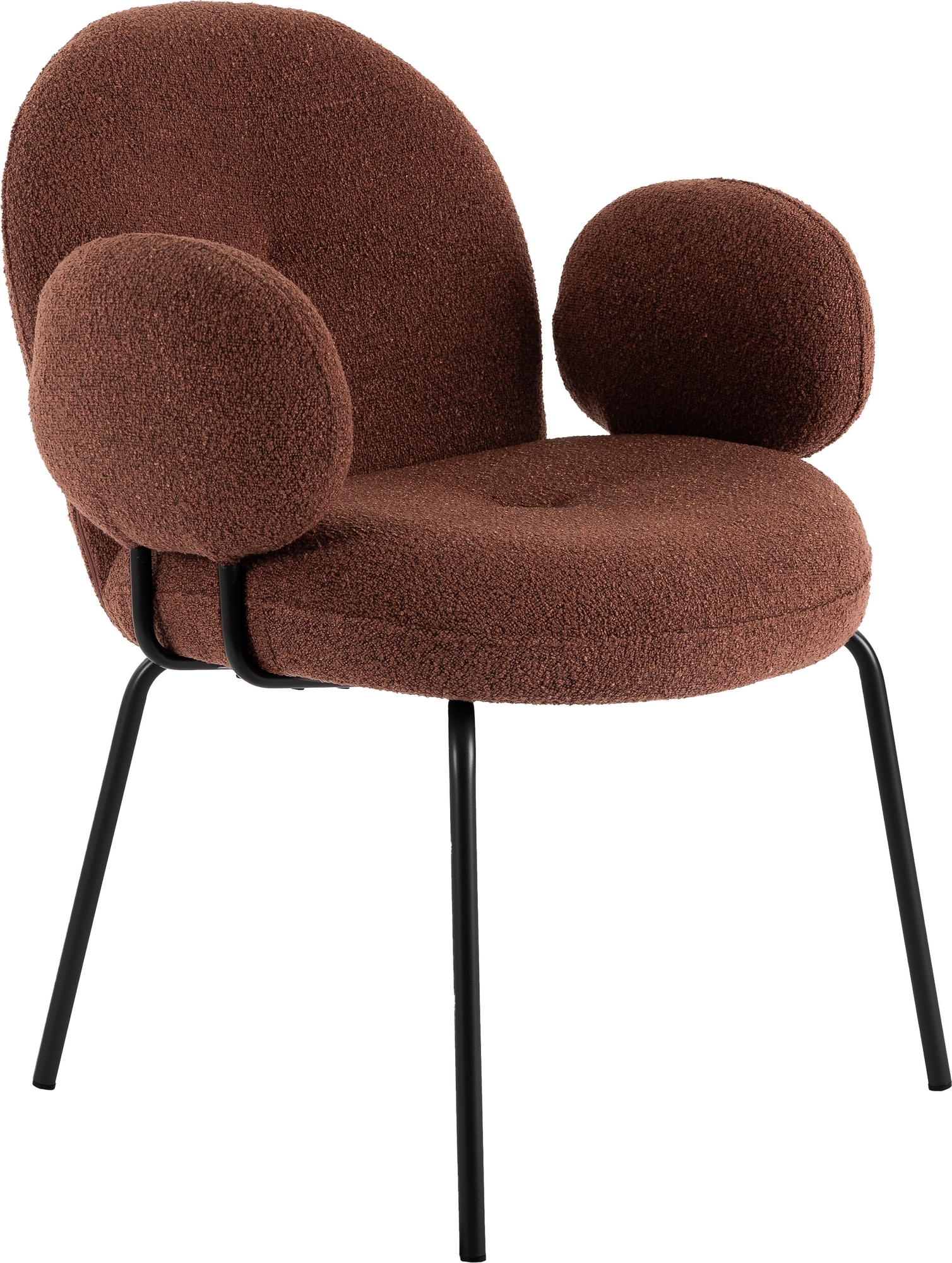 Karmstol i burgundyfärgat polyestertyg(UF995-Y25) med svart metallunderrede.