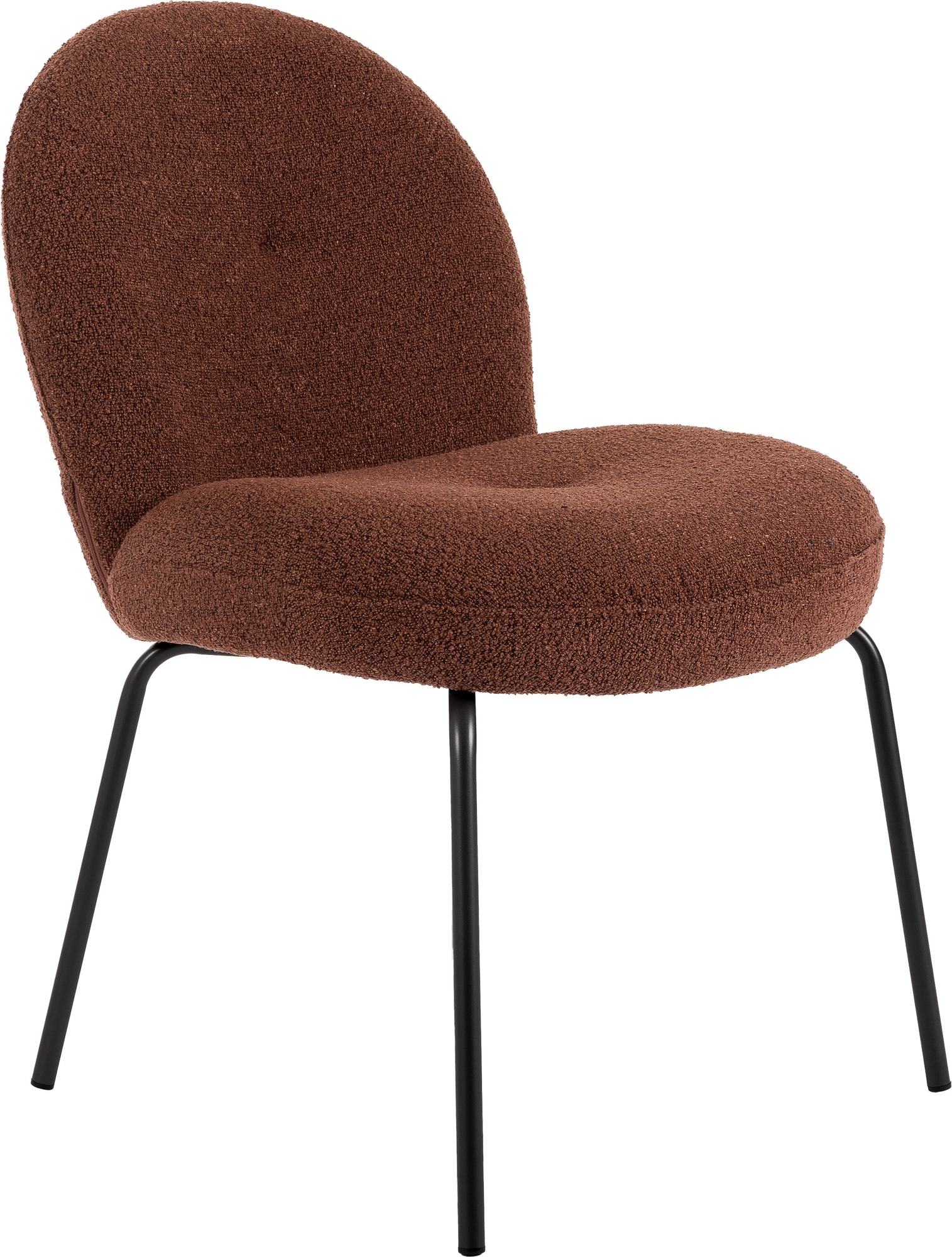 Matstol i burgundyfärgat polyestertyg(UF995-Y25) med svart metallunderrede.