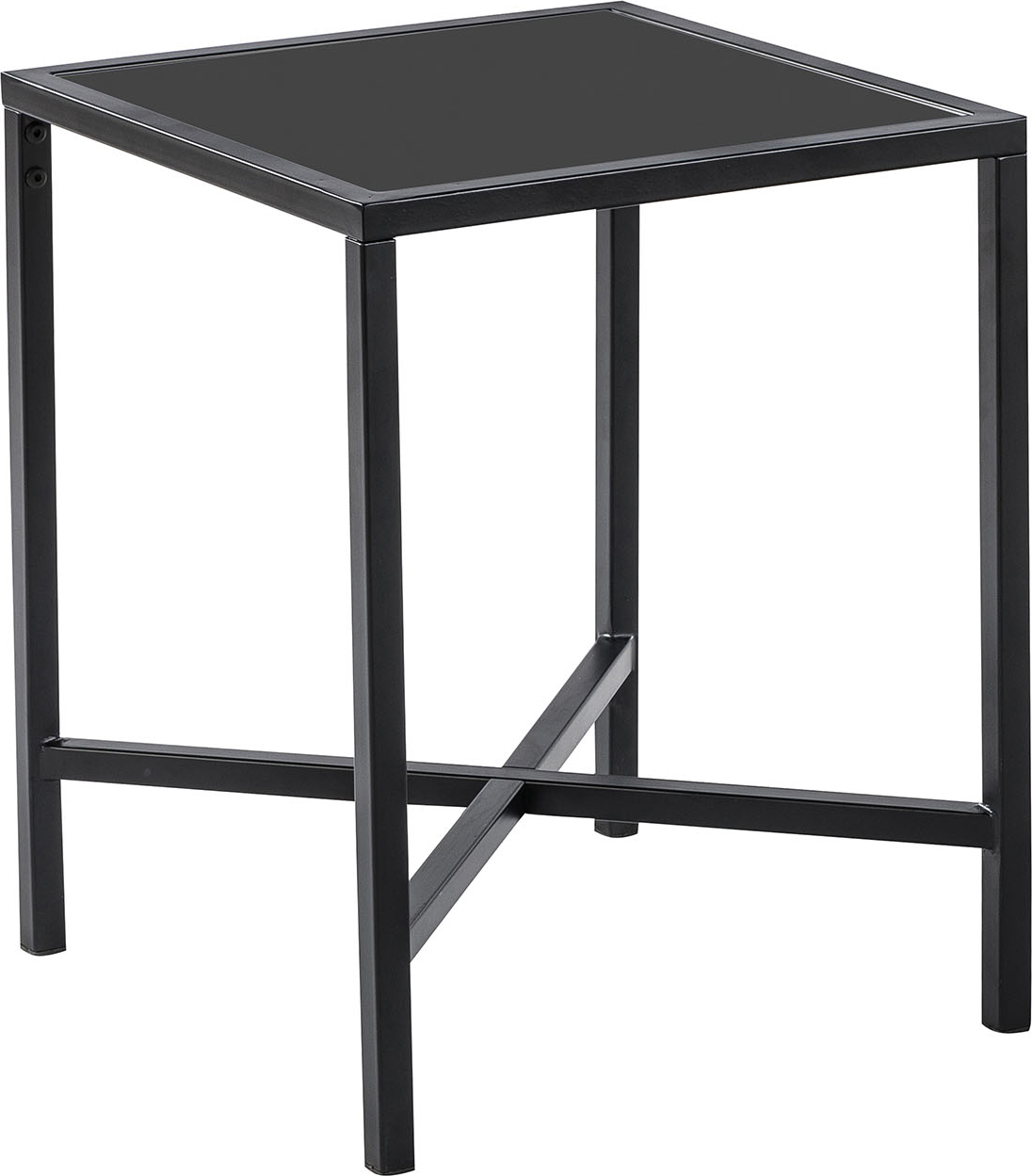 Soffbord av metall. Bordsskiva av tempererat glas.