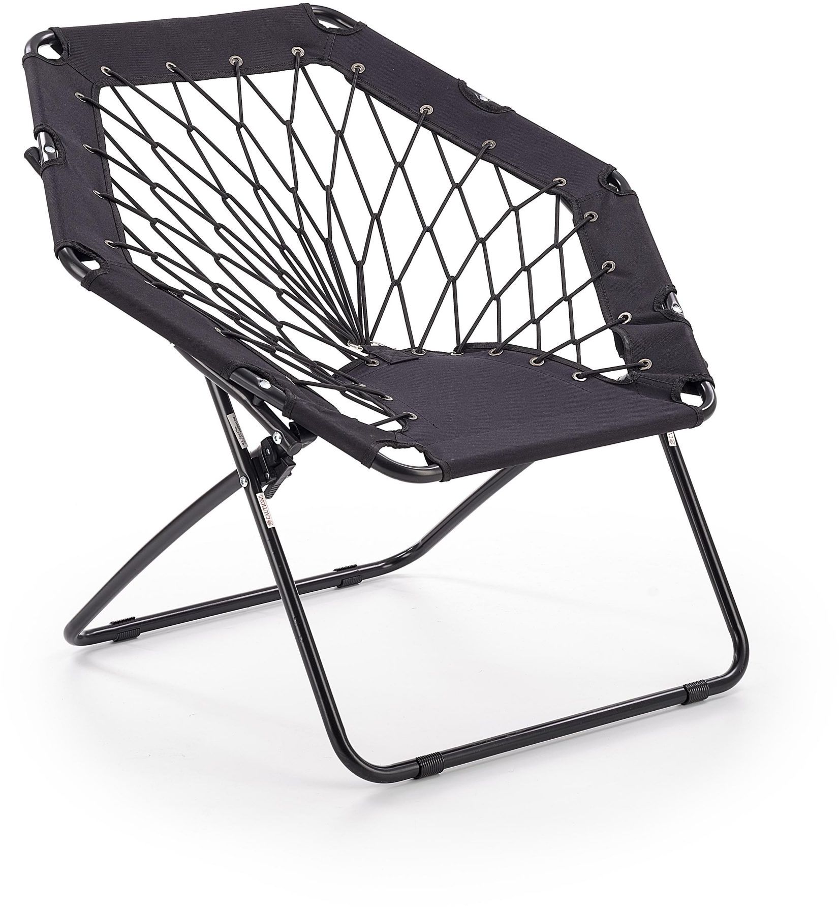 En härlig fåtölj med en praktisk design. Fåtöljen är tillverkad av tyg och polyester band, och underredet är av pulverlackerad metall. Fåtöljen kan lätt fällas ihop när den inte används eller ska förflyttas.