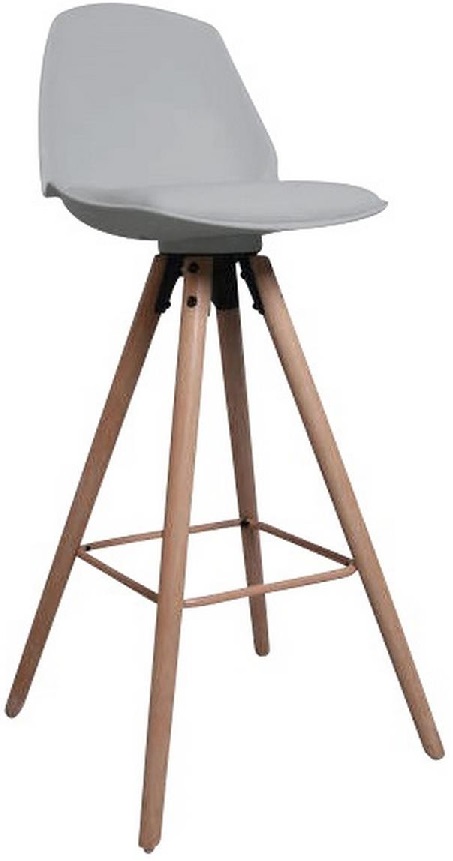 Modern barstol från vår Oslo serie. Stolen är gjord av grå PP plast och klädd med grått PU med benen är av vitoljad ek och rustade med fotstöd. Stolen ingår i vår Oslo serie.