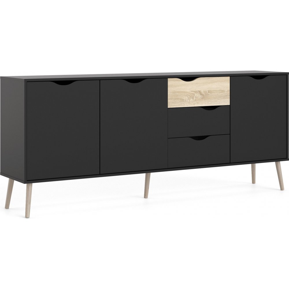 Oslo skänk med 3 skåp och 3 lådor - Svart/ek