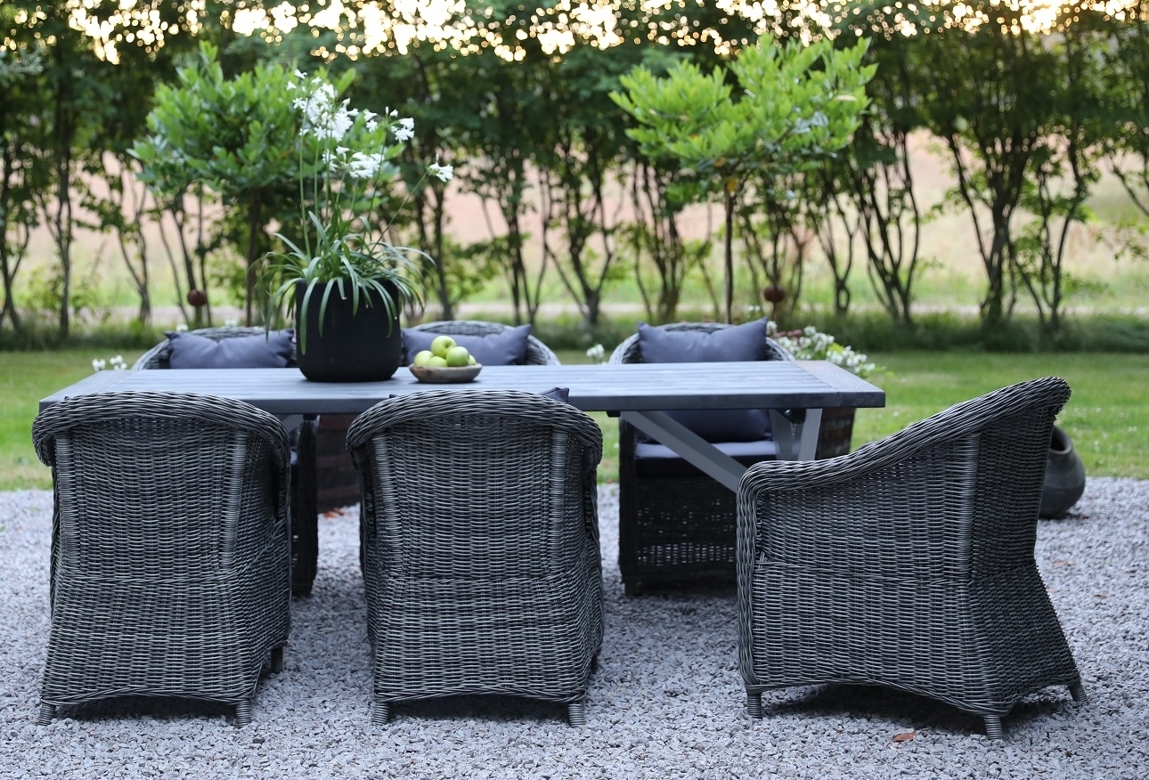 Inklusive 6 st Mercury fåtöljer i matchande grå konstrotting med sittdyna och ryggdyna för bästa komfort. Matgruppen passar perfekt på altanen, uteplatsen och i uterummet.