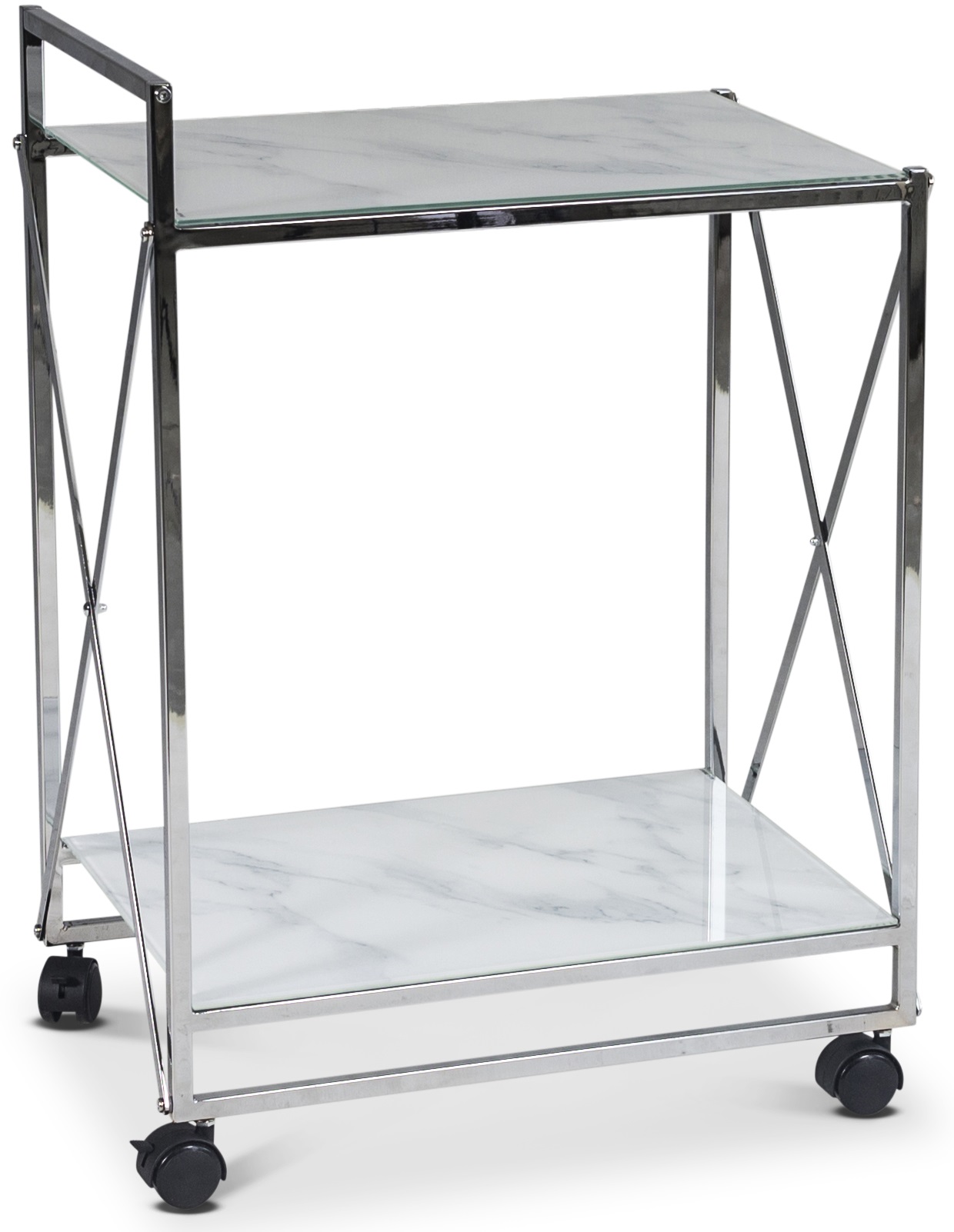 Paladium serveringsvagn i krom / Vitt marmorglas
