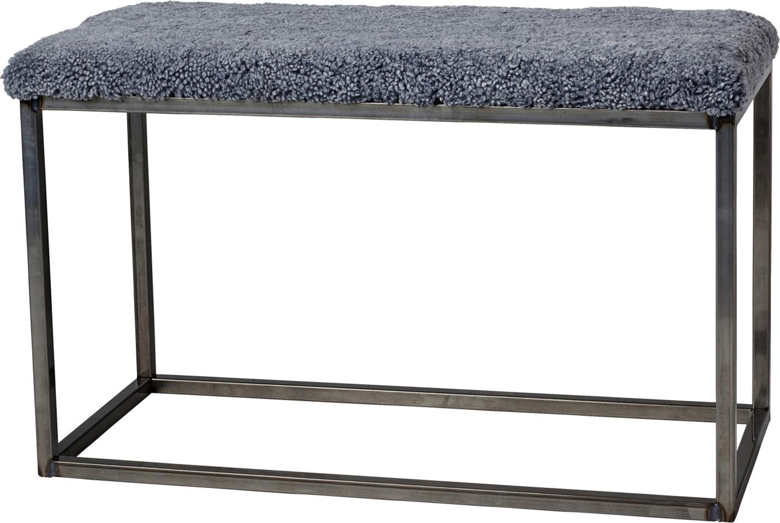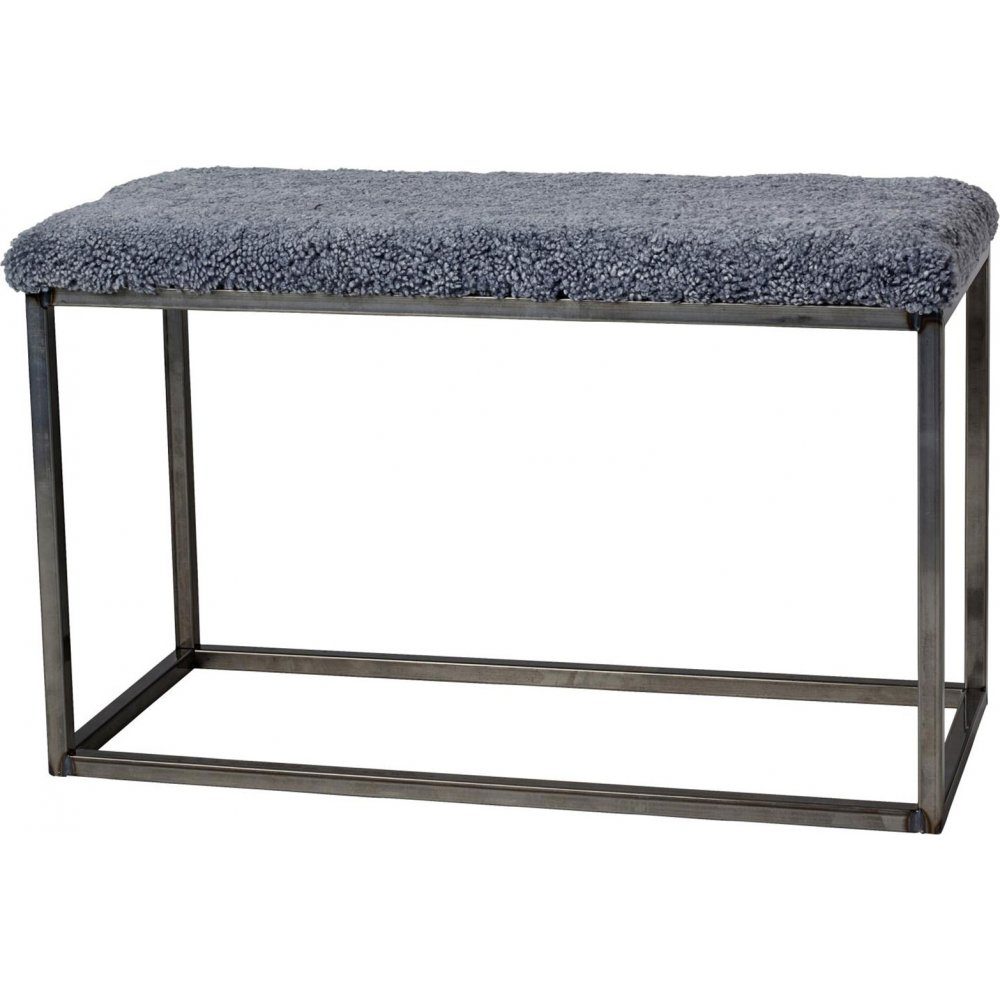 Bänk i klassisk skandinavisk design. Dyna i fårskinn från Australien på ett underrede i stål. Använd som en extra sittplats eller som snygg inredningsdetalj. Finns i flera färgkombinationer och storlekar. Curly fårskinn från Australien är färgade med den miljövänliga färgningsprocessen - ECO-TAN. Två fårskinn är aldrig lika. Det innebär att färdig produkt kan variera i utseende, när det gäller nyans och struktur. Går att komplettera med näthylla av stål i svart eller omålad stål.