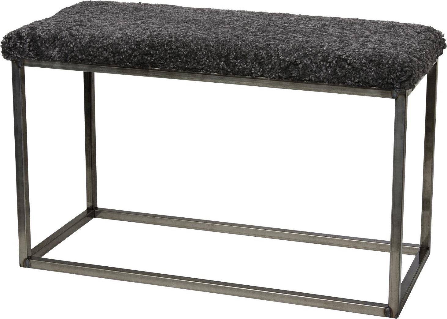 Bänk i klassisk skandinavisk design. Dyna i fårskinn från Australien på ett underrede i stål. Använd som en extra sittplats eller som snygg inredningsdetalj. Finns i flera färgkombinationer och storlekar. Curly fårskinn från Australien är färgade med den miljövänliga färgningsprocessen - ECO-TAN. Två fårskinn är aldrig lika. Det innebär att färdig produkt kan variera i utseende, när det gäller nyans och struktur. Går att komplettera med näthylla av stål i svart eller omålad stål.