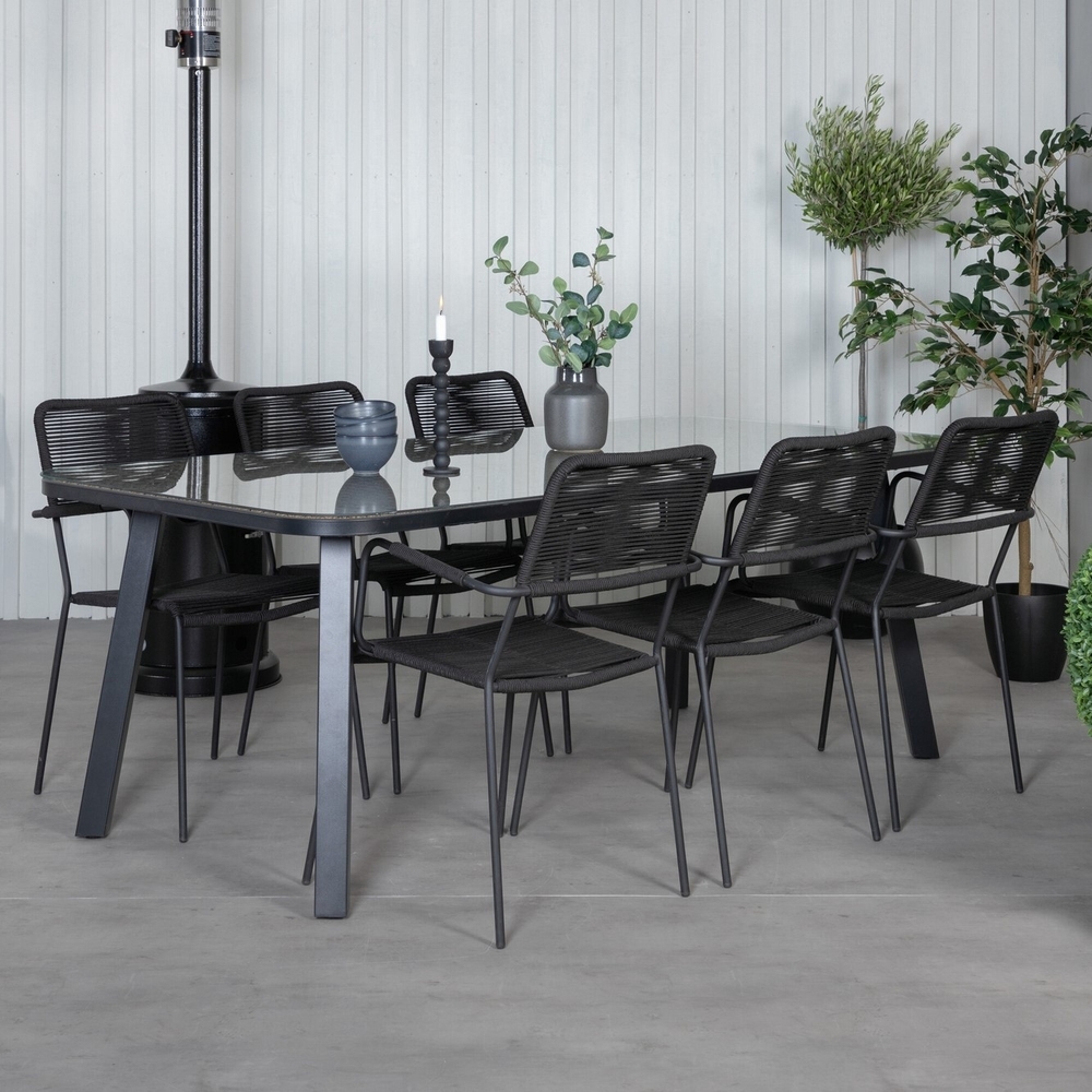 Paola utematgrupp med 6 st Lindos karmstolar - Svart