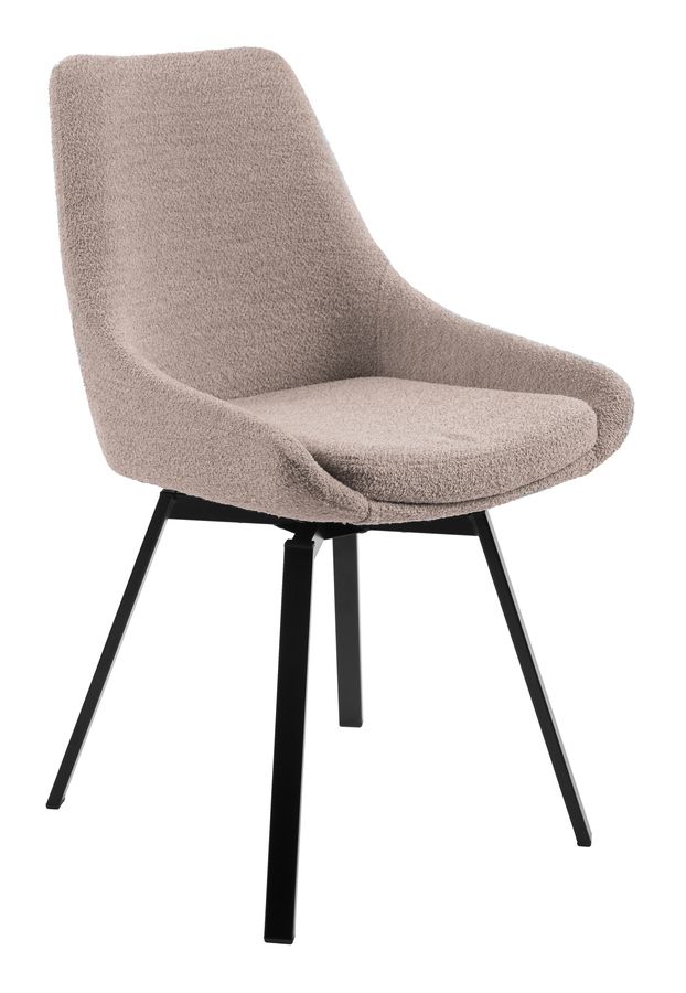 Parade matstol klädd i ett beige tyg med svarta metallben.