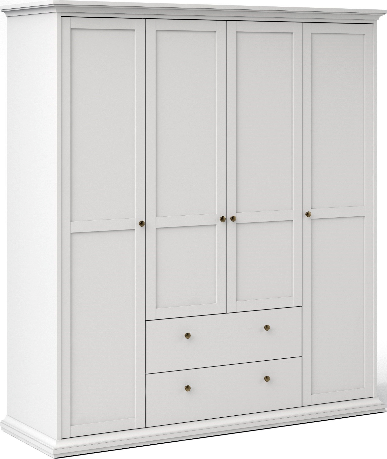 Paris garderob med 4 dörrar och 2 lådor - Vit
