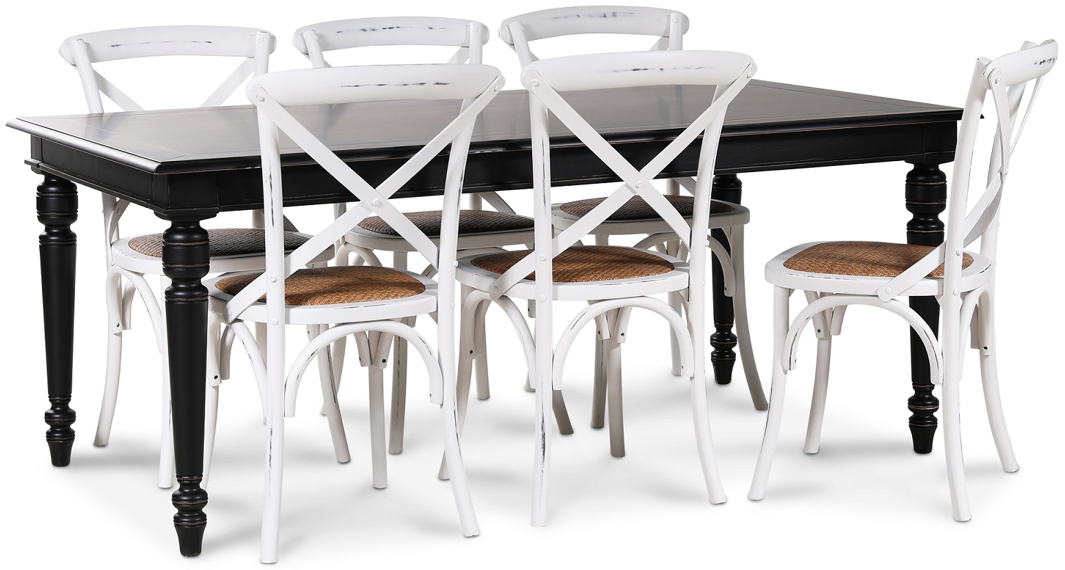 Paris matgrupp 180 cm bord svart + 6 st vita Gaston matstolar