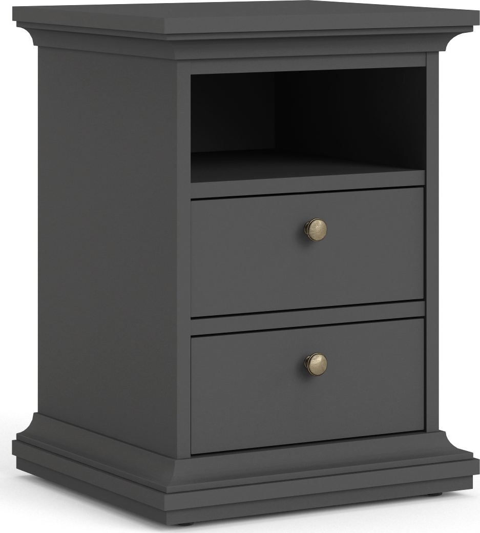 Paris smalt sängbord med 2 lådor och 1 öppet fack - Grå