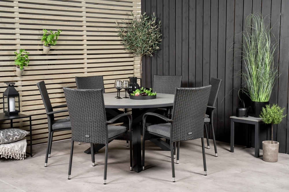 Parma utematgrupp med 6 st Anna stolar - Svart/Grå