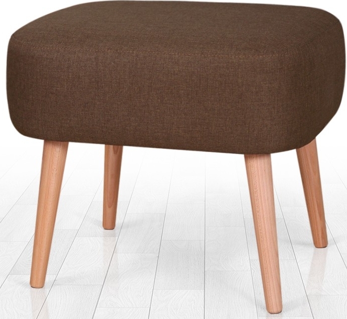Sittpuff av trä. Klädd med bomull och linne. Stoppning av skum.