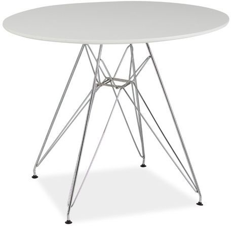 Ett härligt matbord med en modern design. Underredet är tillverkat av kromad metall och bordsskivan är av vitlackerad MDF.