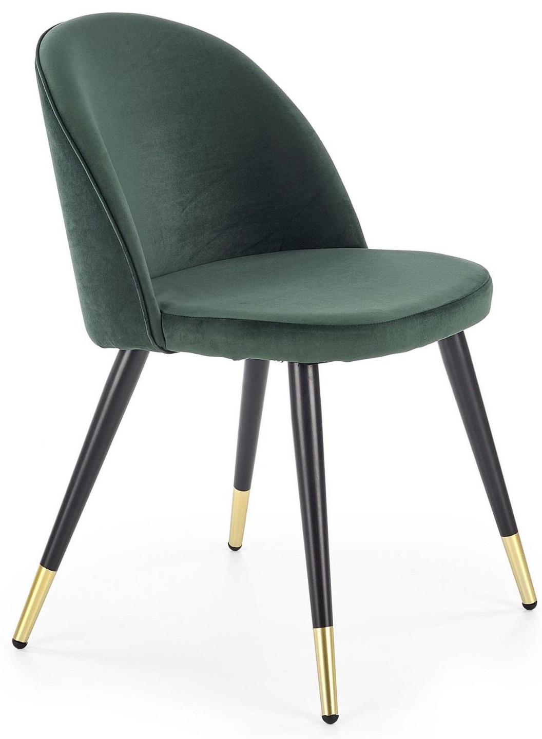 En mysig matstol med en modern design. Stolen är klädd med ett mycket behagligt tyg för maximal komfort och underredet är av pulverlackerad metall med detaljer i guld.
