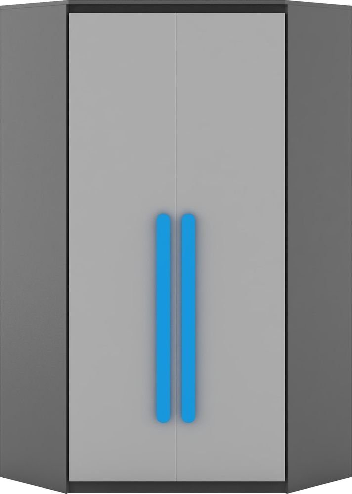 En snygg hörn garderob med en modern design. Tillverkad i MDF och mycket rymlig med goda förvaringsmöjligheter i form av klädstång och hyllplan.