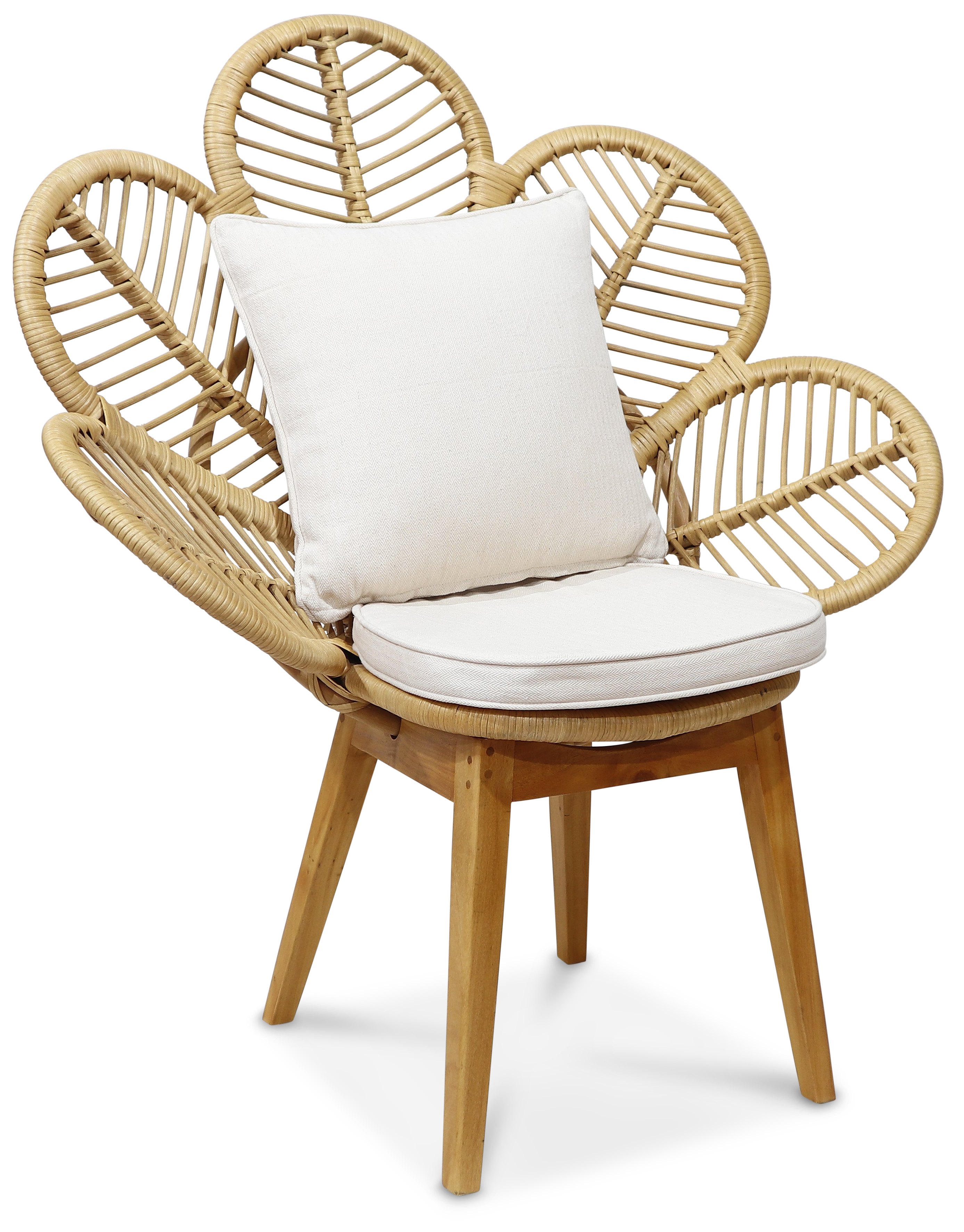 Peacock loungefåtölj i flätad och bunden naturlig rotting. Fantastisk handarbete som alltid håller. sitt och ryggdyna i ljust tyg.