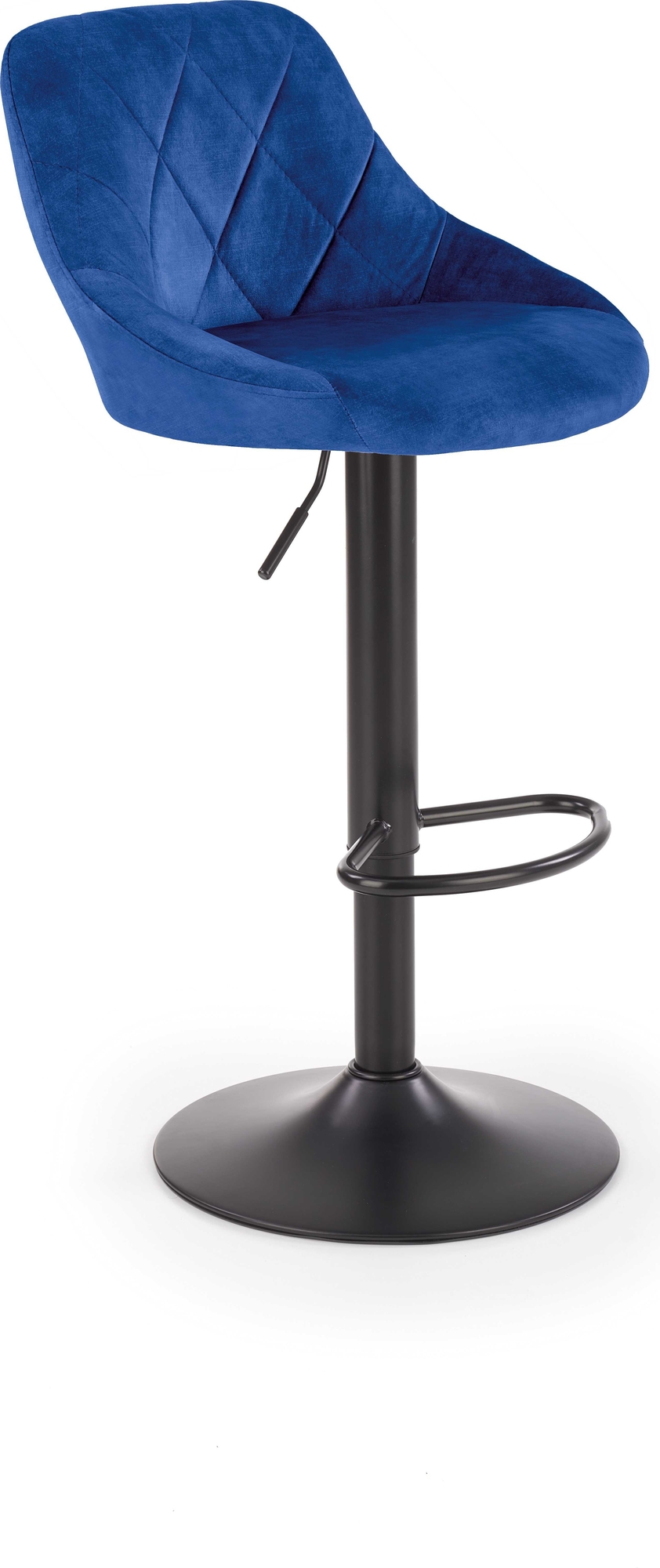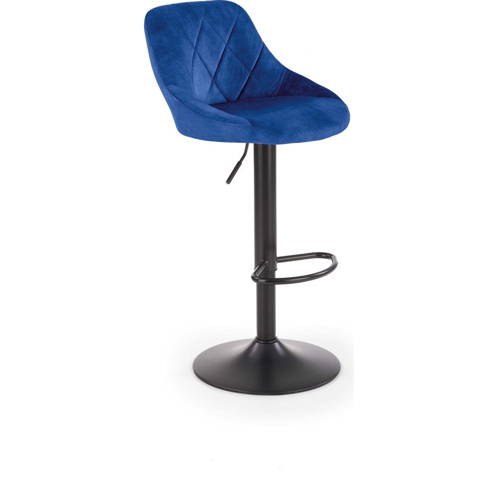 Barstol med underrede av pulverlackerad stål och klädsel av sammetstyg.