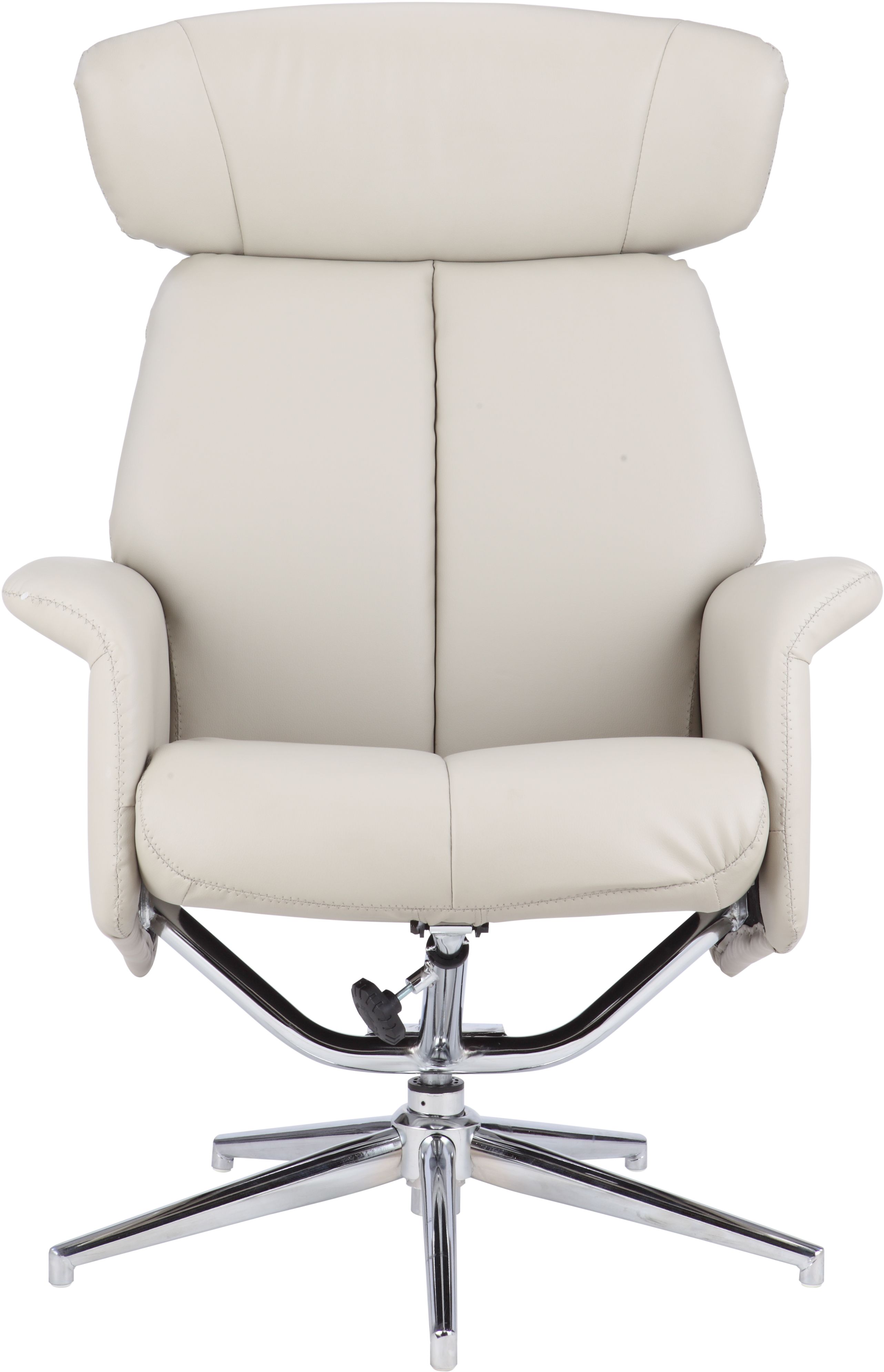 En lyxig fåtölj med fotpall. Klädd med ett härligt och elegant beige konstläder och är perfekt för att luta sig tillbaka och bara slappna av. Passar in perfekt i vardagsrummet, för sig själv eller intill en soffgrupp.