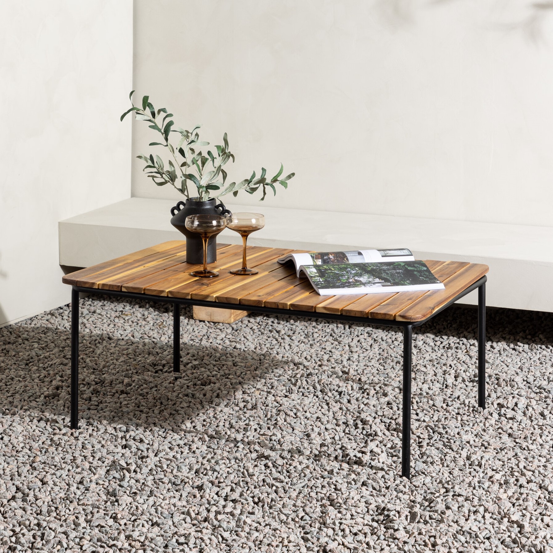 Introducerar stolt "Penh" - det perfekta soffbordet för att förvandla ditt utomhusutrymme. Tillverkat av akacia och förstärkt med eleganta stålben, är Penh inte bara en praktisk möbel utan också ett stilfullt tillägg till din trädgård eller uteplats. Penh är designat för att klara utomhusmiljöer och är det idealiska valet för dem som söker både funktionalitet och estetik. Akacia-träet ger inte bara en naturlig skönhet utan är också känt för sin hållbarhet och motståndskraft mot väder och element. Stålbenen kompletterar bordet med en modern touch och ger en stadig grund. Detta soffbord är inte bara ett praktiskt tillskott till ditt utomhusutrymme, utan det blir också ett samtalsämne med dess enastående design. Oavsett om du njuter av en avkopplande stund på din terrass eller har vänner över för grillning, kommer Penh att vara en pålitlig och snygg följeslagare. Med Penh-soffbordet får du inte bara en elegant möbel, utan också en möbel som är byggd för att stå emot tidens tand och väderlekens påverkan. Skapa minnen och njut av varje ögonblick med Penh - det ultimata soffbordet för ditt utomhusliv.