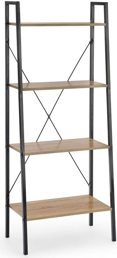 En mysig bokhylla med en modern design. Bokhyllan har 4 hyllplan för praktisk förvaring som är gjorda av MFP (premium träskiva) med ett härligt fanér. Själva ramen är tillverkad av pulverlackerad metall.