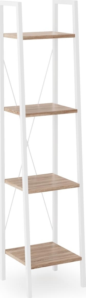 En snygg bokhylla med en modern design. Bokhyllan har 4 hyllplan för praktisk förvaring som är gjorda av laminerad spånskiva. Själva ramen är tillverkad av pulverlackerad metall.