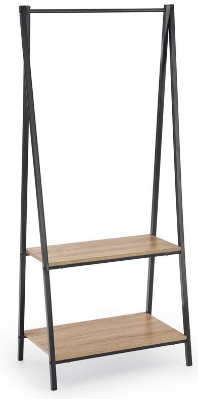En fin skohylla med en modern design. Skohyllan har 2 hyllplan av MFP (premium träskiva) med ett härligt fanér för förvaring av skor och en praktisk stång som kan användas som klädhängare, tillverkad i pulverlacker metall.