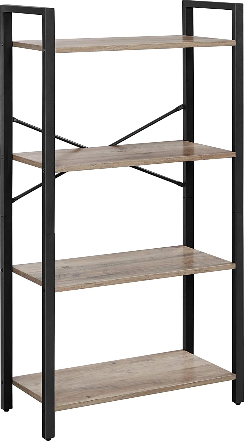 Bokhylla av trä och stål.