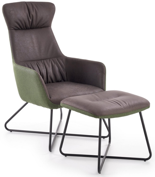 Phillis fåtölj med fotpall - Grön/brun