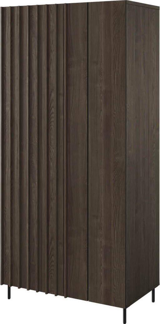 Garderob av laminerad spånskiva med ben av metall. Levereras omonterad.