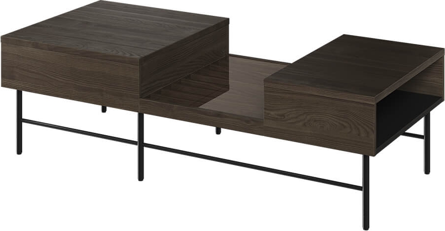 Soffbord av laminerad spånskiva med ben av metall. Levereras omonterad.