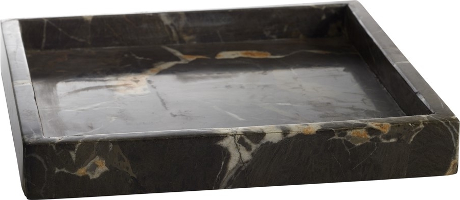 Underbar bricka i brun marmor från Spanien. Vacker och praktisk på en och samma gång i många av hemmets rum. Godkänd att ha mat på. Marmor är ett poröst naturmaterial som är känsligt för olika sorters vätskor. Torka omgående upp spilld vätska som hamnat på brickan.