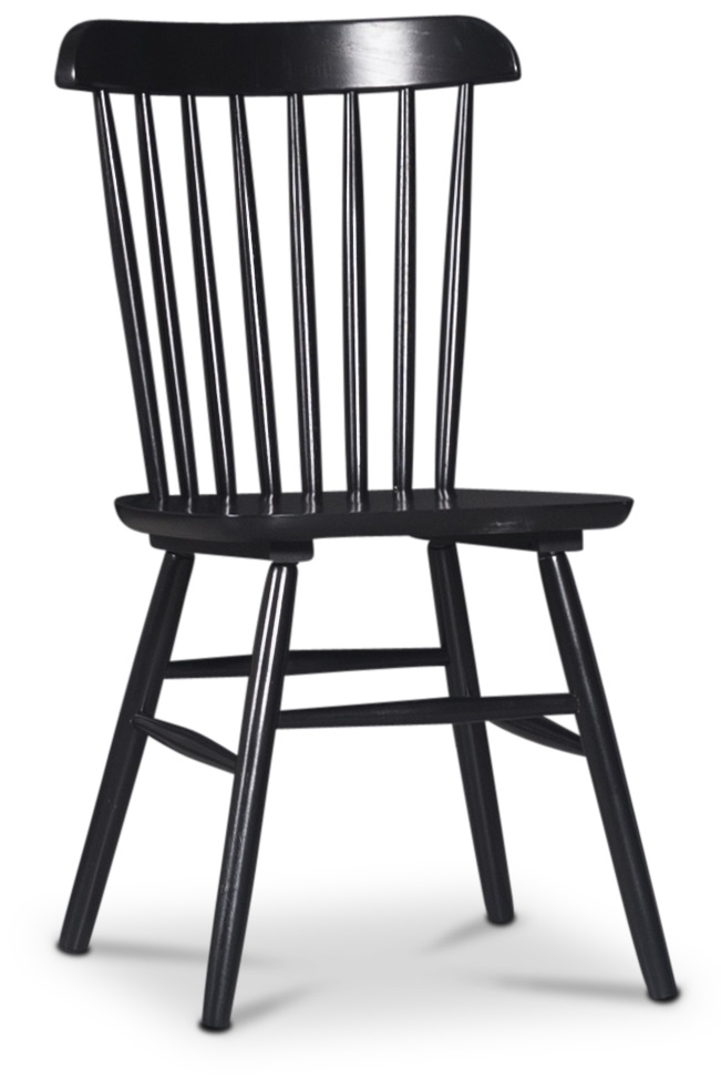 Pinnstolen Ålesund är en matstol i välkänd retrodesign i svartlackat massivt trä.