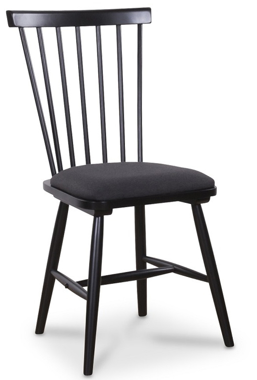 Pinnstolen är mer populär än någonsin och med stolen Småland kan vi erbjuda ett mycket prisvärt alternativ. Finns i fler färger. Sitsen har en stoppad tygsits för att ge en skön och behaglig sittkomfort! Stolen är svartlackad med mörkgrått slitstarkt tyg!
